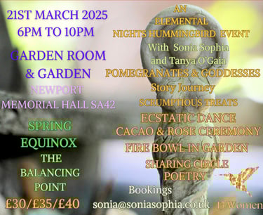 - Cacao Ceremony (Rose & Hawthorn Tea Option)