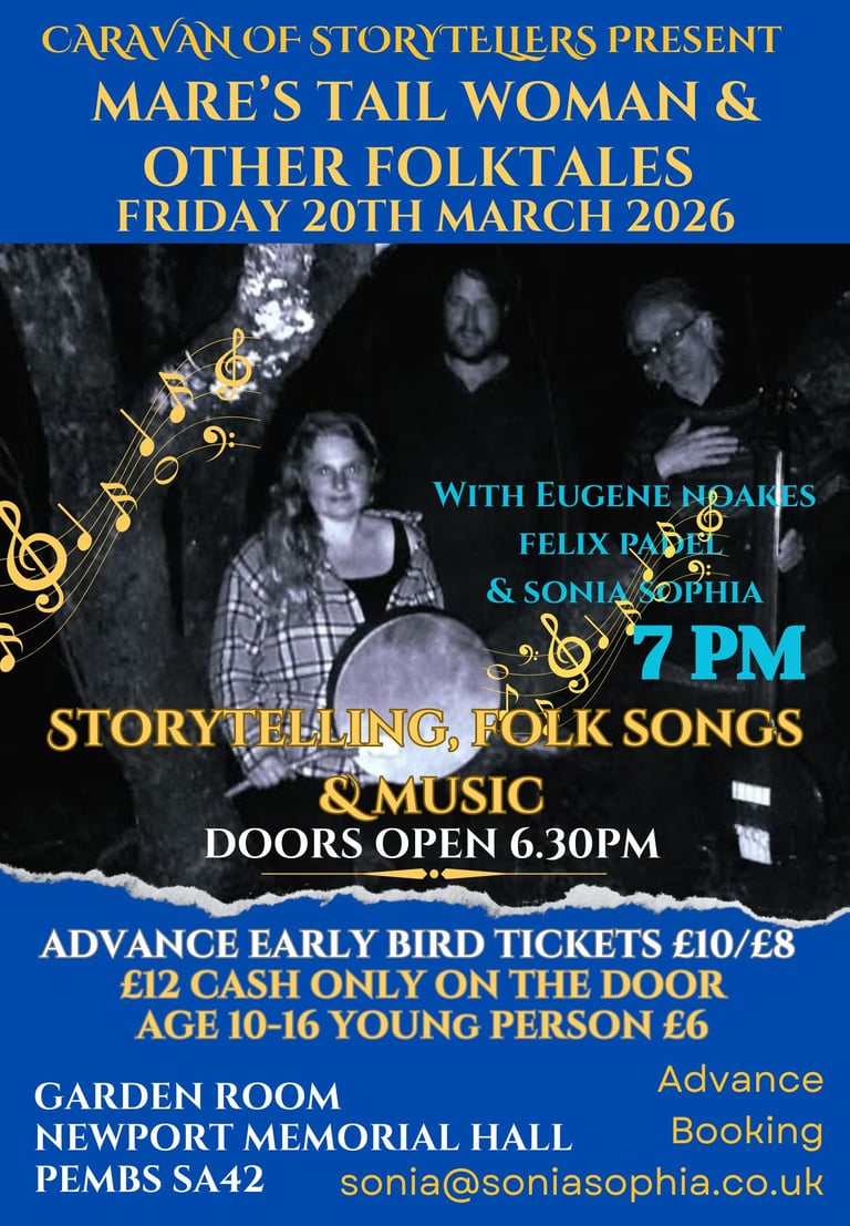 Caravan of Storytellers are delighted to return to Newport Hall Garden Room, The last evening was a sell out! With people arriving in a STORM